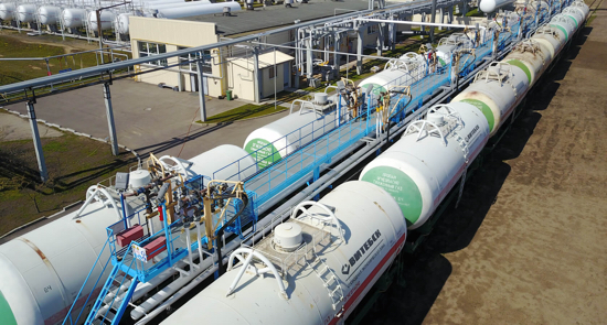 SIA "Latvijas Propāna Gāze" performs works on gas reception in tankers, placement in shore tanks and delivery to the customer in railway tanks or gas carriers.