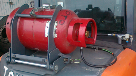 1. Эти баллоны сжиженного нефтяного газа (далее по тексту «баллоны») не предназначены для их эксплуатации в работе бытовой техники и промаркированы символом погрузчика или горизонтальной белой полосой. Их использование возможно только в горизонтальном положении, так как баллон оборудован специальным вентилем с согнутой трубкой, которая направлена в наиболее глубокую точку баллона, чтобы обеспечить подачу жидкой фазы газа в двигатель. Поставщик предоставляет следующие типы баллонов: 46л =>19кг; 27л =>11кг; 25л =>10кг;