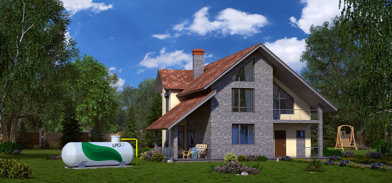Надземный вариант расположения емкости это идеальный вариант для тех, кто хочет воспользоваться всеми преимуществами отопления сжиженным газом, при этом сэкономив на приобретении и монтаже емкости.